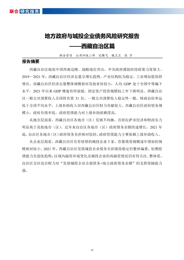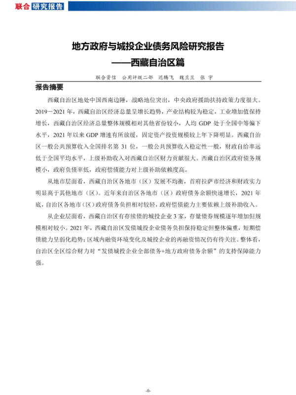 【联合资信】【20221109】地方政府与城投企业债务风险研究报告:西藏自治区篇-21页