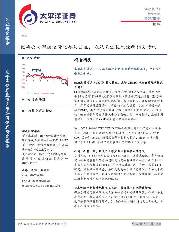 【太平洋证券】【20220318】医药行业周报:优质公司回调性价比越发凸显,以及关注抗原检测相关标的-18页
