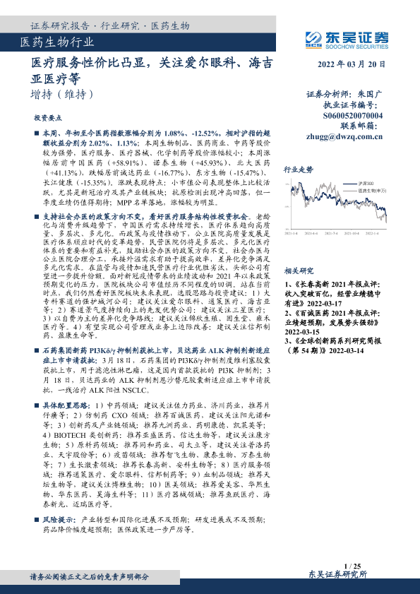 【东吴证券】【20220320】医药生物行业:医疗服务性价比凸显,关注爱尔眼科、海吉亚医疗等-25页