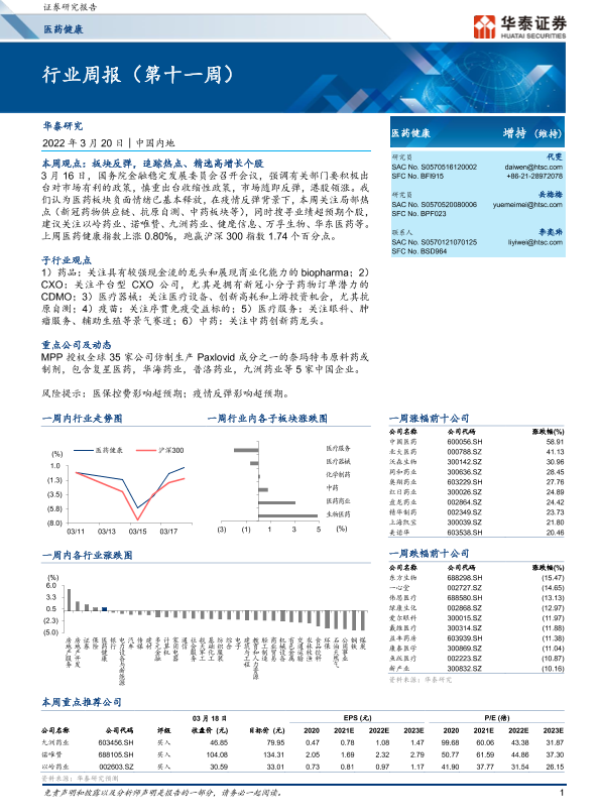 【华泰证券】【20220320】医药健康行业周报(第十一周)-11页