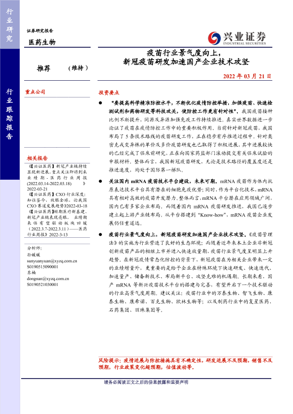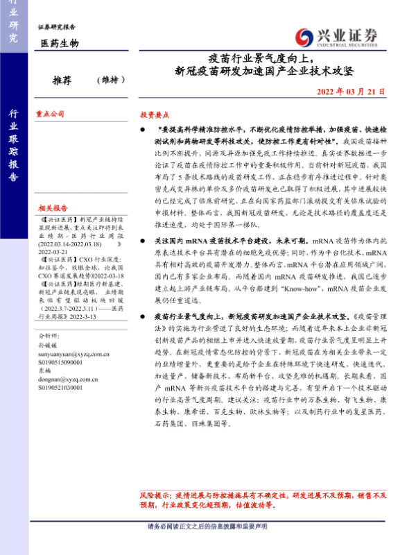【兴业证券】【20220321】疫苗行业景气度向上,新冠疫苗研发加速国产企业技术攻坚-20页