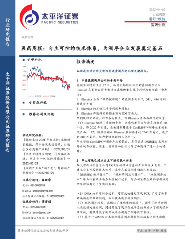 【太平洋证券】【20220402】医药周报:自主可控的技术体系,为测序企业发展奠定基石-18页