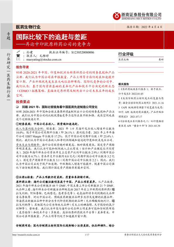 【浙商证券】【20220404】再论中印欧原料药公司的竞争力:国际比较下的追赶与差距-17页