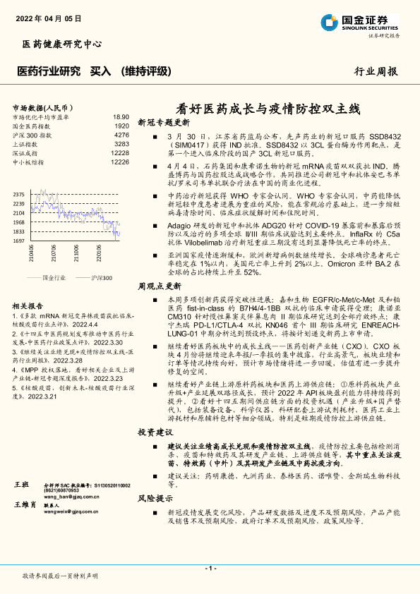 【国金证券】【20220405】医药行业研究:看好医药成长与疫情防控双主线-25页