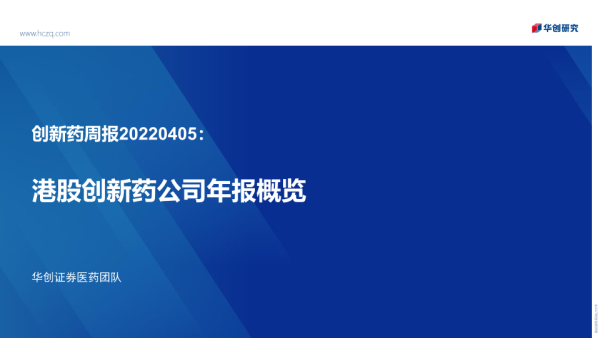 【华创证券】【20220405】创新药周报:港股创新药公司年报概览-26页