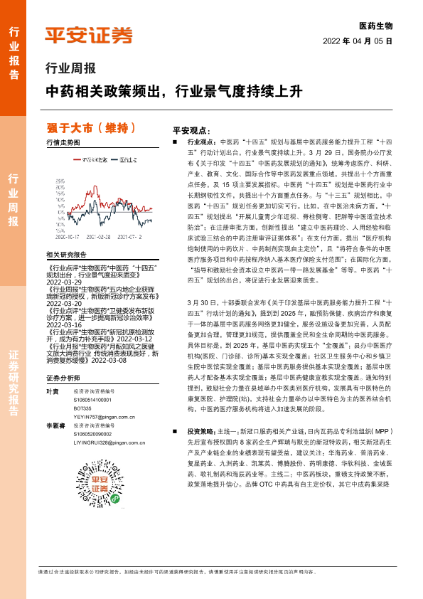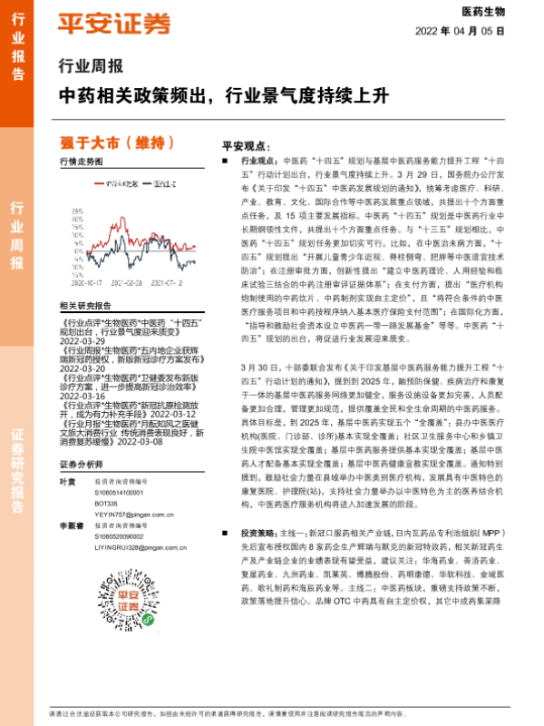 【平安证券】【20220405】医药生物行业周报:中药相关政策频出,行业景气度持续上升-7页
