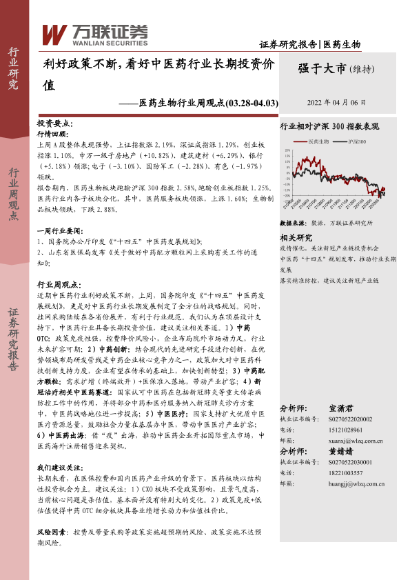 【万联证券】【20220406】利好政策不断,看好中医药行业长期投资价值-9页
