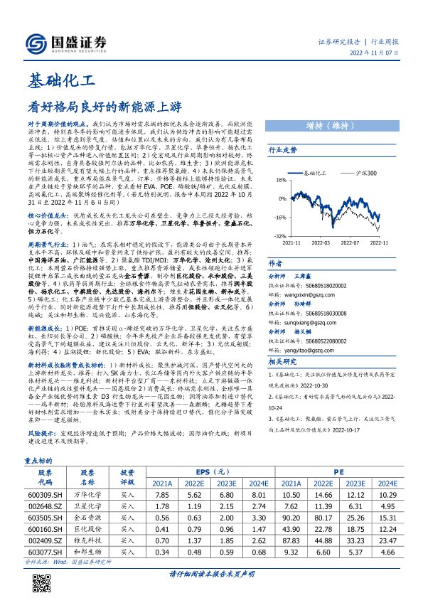 【国盛证券】【20221107】基础化工行业周报:看好格局良好的新能源上游-29页