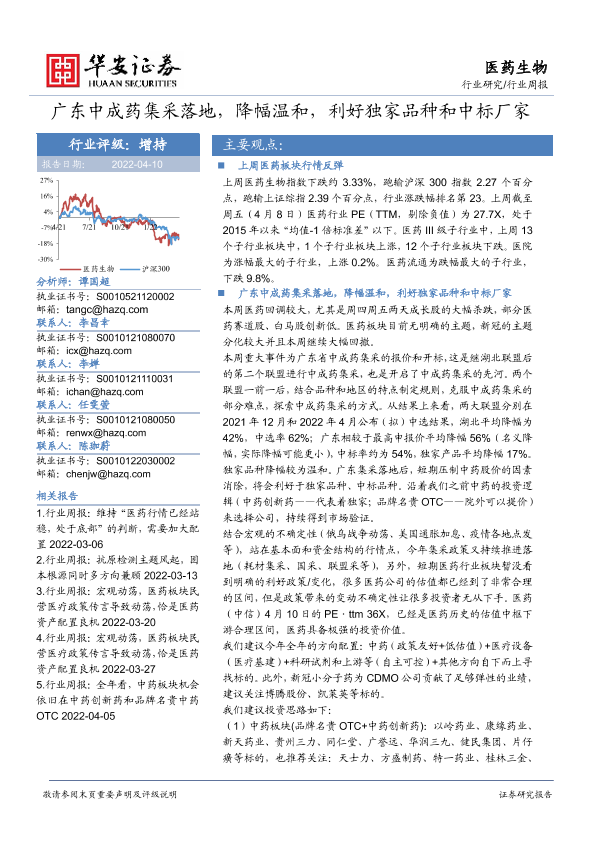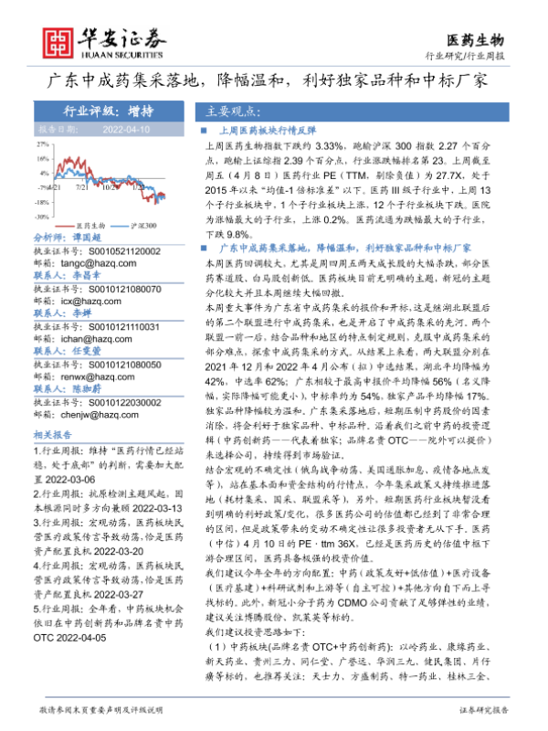 【华安证券】【20220410】医药生物行业周报:广东中成药集采落地,降幅温和,利好独家品种和中标厂家-22页