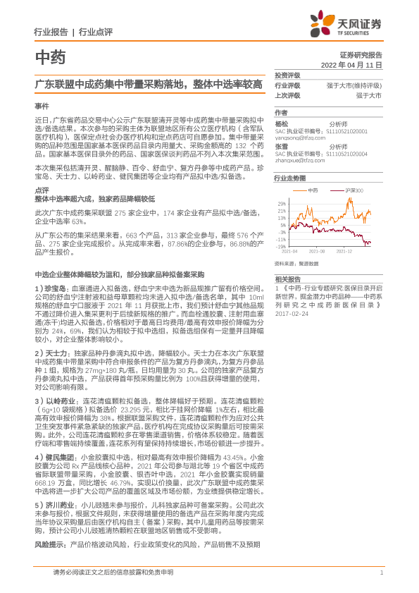 【天风证券】【20220411】广东联盟中成药集中带量采购落地,整体中选率较高-6页
