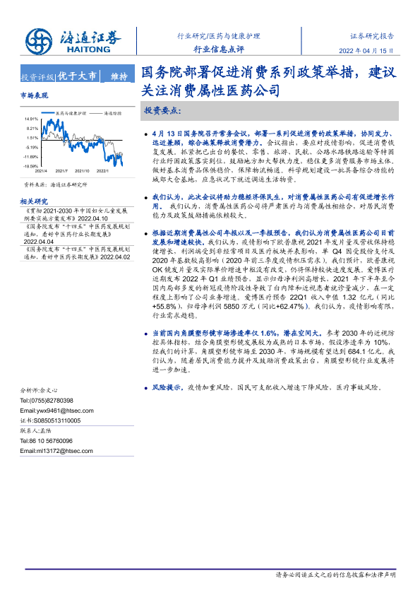 【海通证券】【20220415】医药与健康护理行业信息点评:国务院部署促进消费系列政策举措-2页
