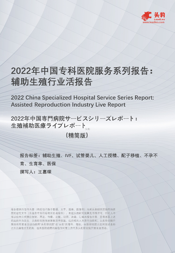 【头豹研究院】【2022】中国专科医院服务系列报告:辅助生殖行业活报告-10页