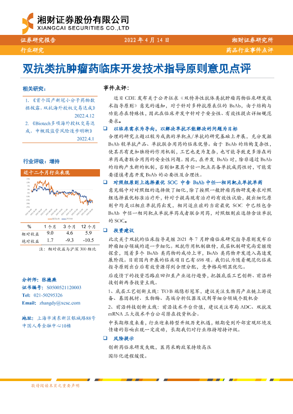 【湘财证券】【20220414】双抗类抗肿瘤药临床开发技术指导原则意见点评-2页