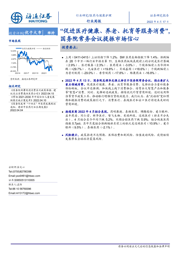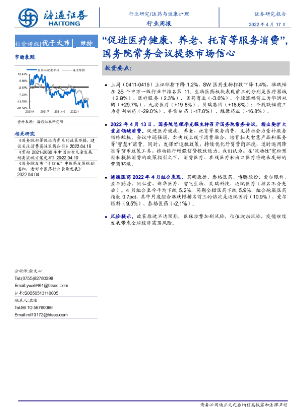 【海通证券】【20220417】促进医疗健康、养老、托育等服务消费——国务院常务会议提振市场信心-6页