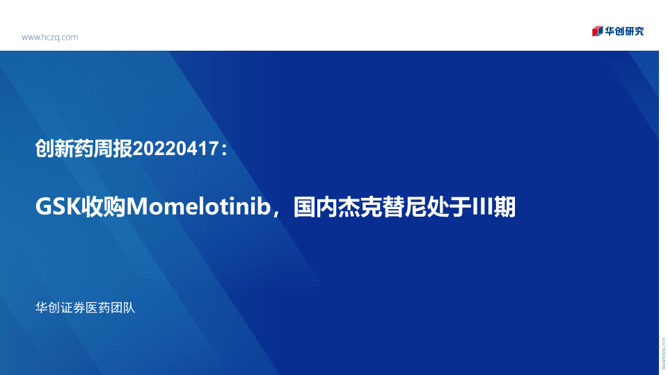 【华创证券】【20220417】创新药周报:GSK收购Momelotinib,国内杰克替尼处于III期-29页