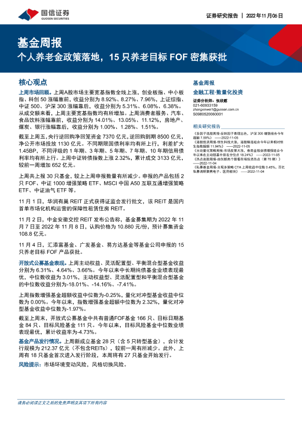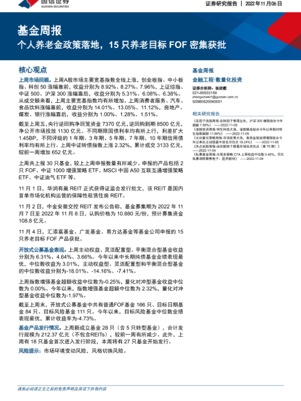 【国信证券】【20221106】基金周报:个人养老金政策落地,15只养老目标FOF密集获批-22页