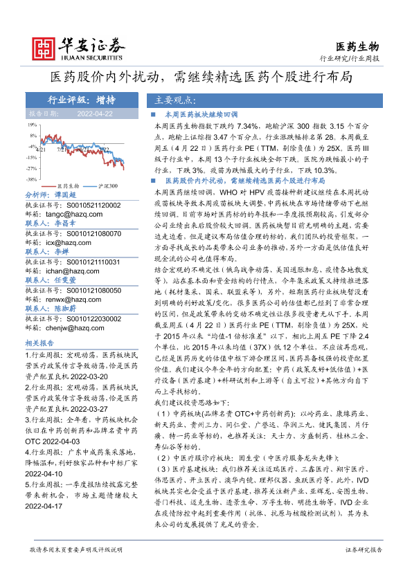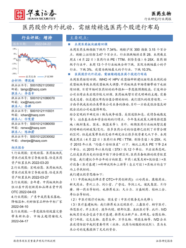 【华安证券】【20220422】医药生物行业周报:医药股价内外扰动,需继续精选医药个股进行布局-27页