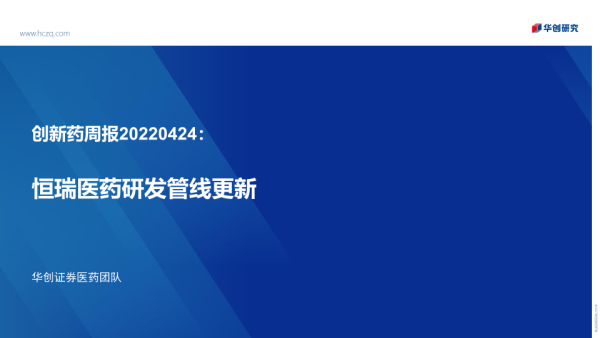 【华创证券】【20220424】创新药周报:恒瑞医药研发管线更新-27页