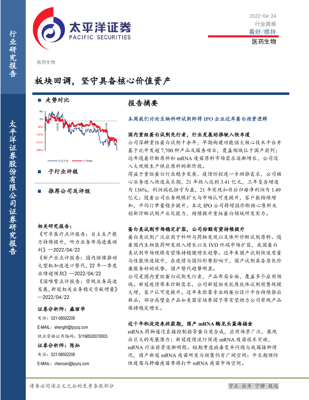 【太平洋证券】【20220424】医药生物行业周报:板块回调,坚守具备核心价值资产-17页