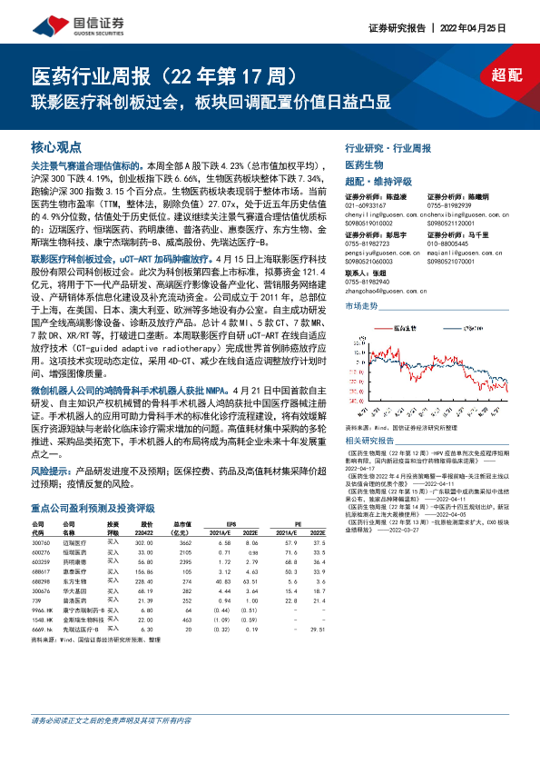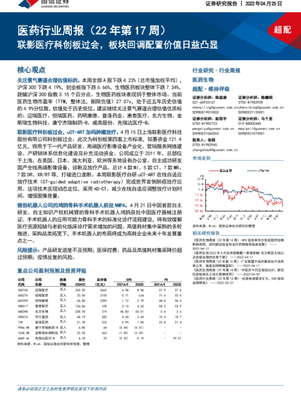 【国信证券】【20220425】医药行业周报:联影医疗科创板过会,板块回调配置价值日益凸显-14页