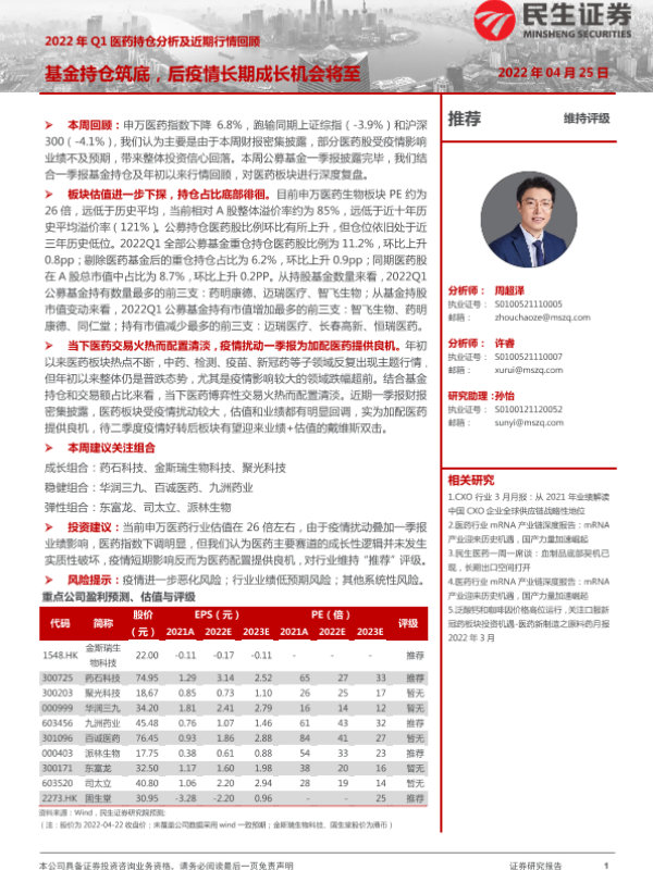 【民生证券】【20220425】2022年Q1医药持仓分析及近期行情回顾-14页