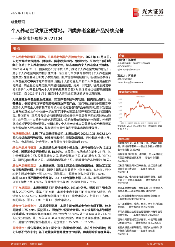 【光大证券】【20221106】基金市场周报:个人养老金政策正式落地,四类养老金融产品持续完善20221106-23页