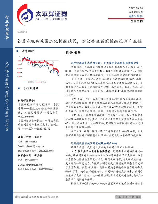 【太平洋证券】【20220505】全国多地实施常态化核酸政策,建议关注新冠核酸检测产业链-4页