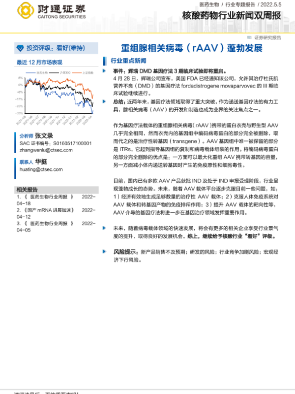 【财通证券】【20220505】核酸药物行业新闻双周报:重组腺相关病毒(rAAV)蓬勃发展-11页