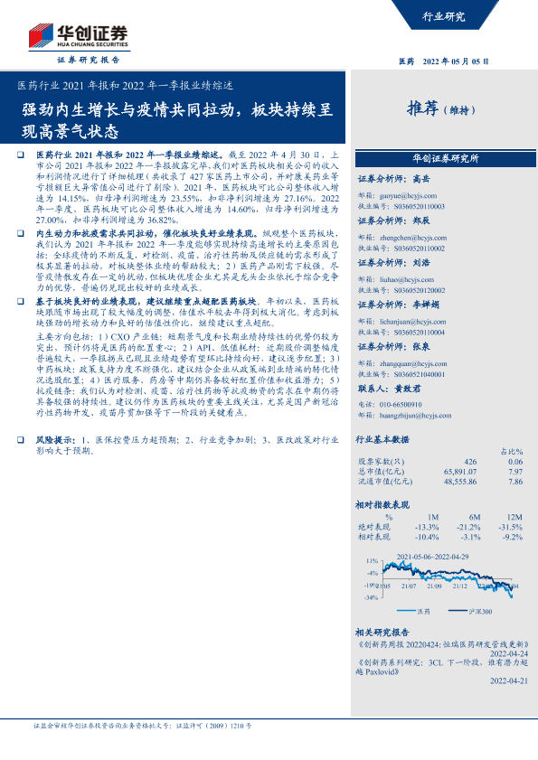 【华创证券】【20220505】医药行业2021年报和2022年一季报业绩综述-25页