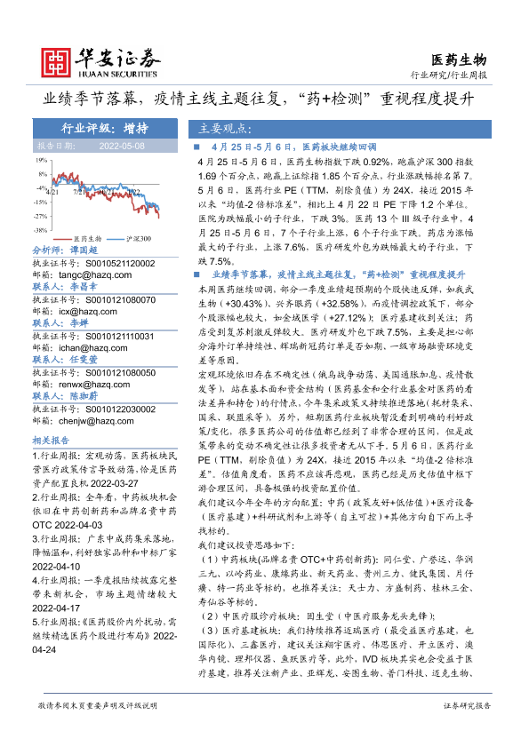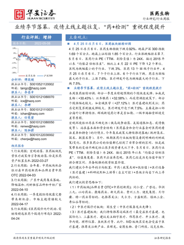 【华安证券】【20220508】医药生物行业周报:业绩季节落幕,疫情主线主题往复,“药+检测”重视程度提升-36页
