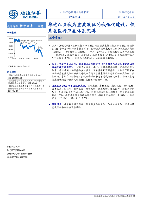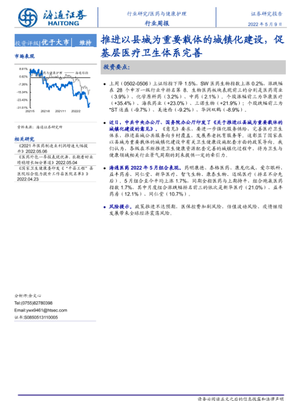 【海通证券】【20220509】推进以县城为重要载体的城镇化建设,促基层医疗卫生体系完善-6页