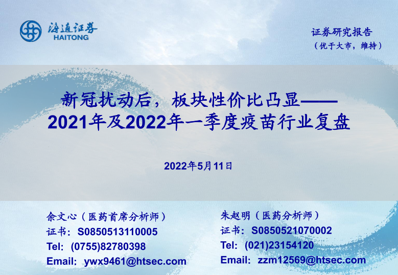 【海通证券】【20220511】2021年及2022年一季度疫苗行业复盘:新冠扰动后,板块性价比凸显-20页