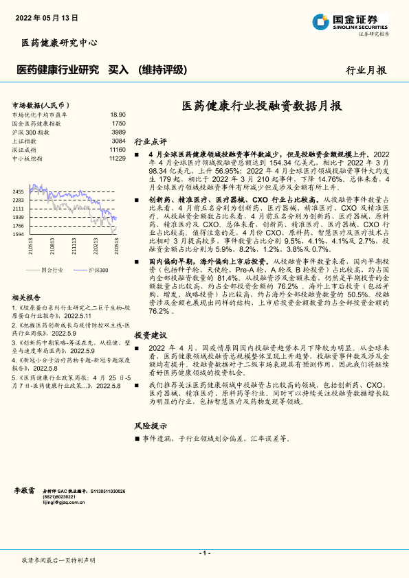 【国金证券】【20220513】医药健康行业投融资数据月报-10页