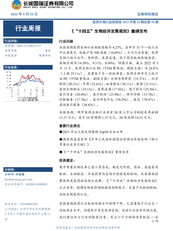 【长城国瑞证券】【20220516】'十四五'生物经济发展规划重磅发布-12页