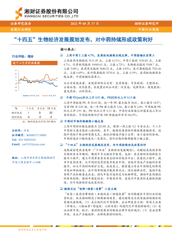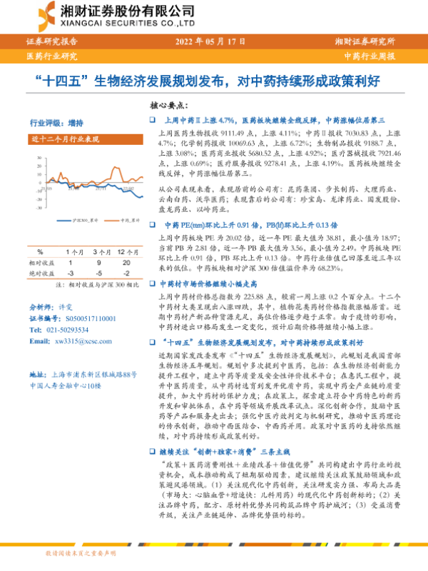 【湘财证券】【20220517】“十四五”生物经济发展规划发布,对中药持续形成政策利好-12页