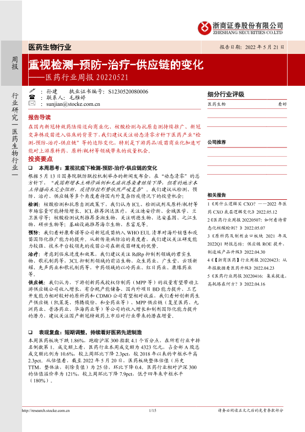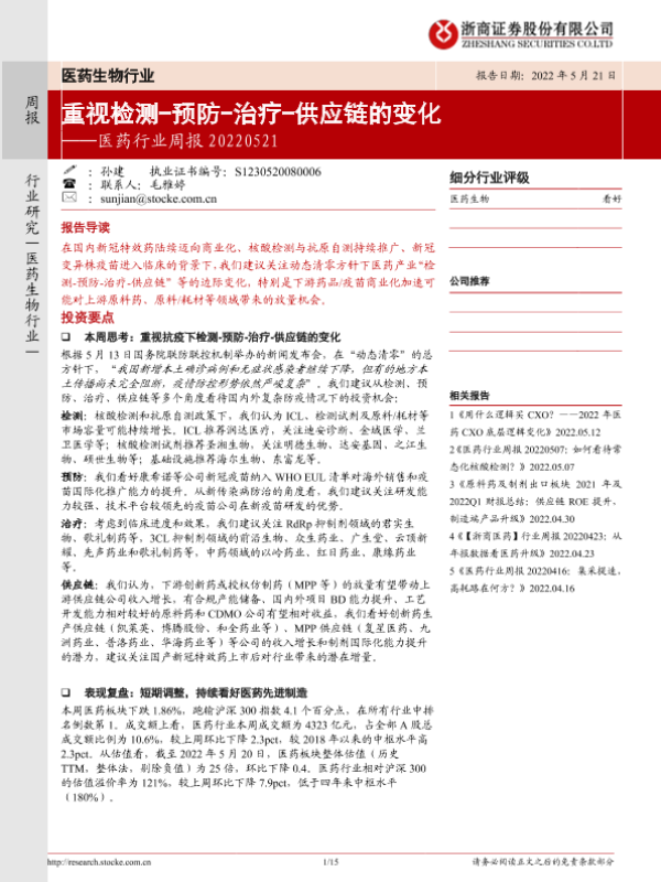 【浙商证券】【20220521】医药行业周报:重视检测-预防-治疗-供应链的变化-15页