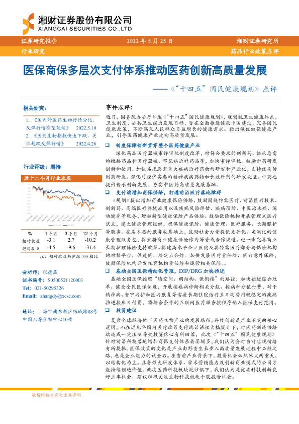 【湘财证券】【20220525】'十四五'国民健康规划点评 医保商保多层次支付体系推动医药创新高质量发展-3页