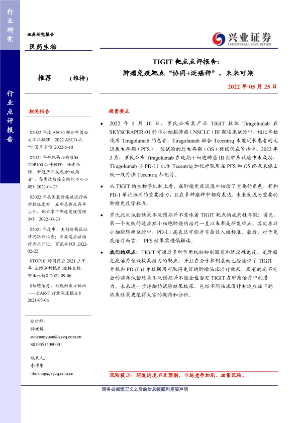 【兴业证券】【20220525】TIGIT靶点点评报告:肿瘤免疫靶点“协同+泛癌种”,未来可期-13页