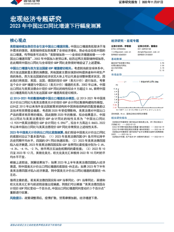 【国信证券】【20221107】2023年中国出口同比增速下行幅度测算-22页