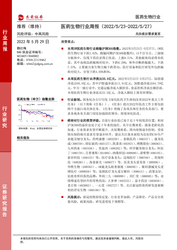 【东莞证券】【20220529】医药生物行业周报:关注疫后需求复苏-10页