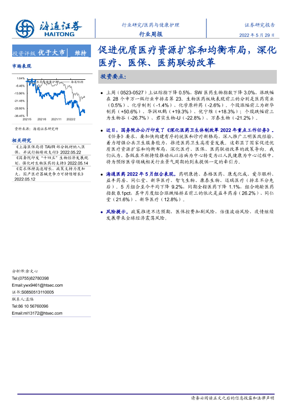 【海通证券】【20220529】促进优质医疗资源扩容和均衡布局,深化医疗、医保、医药联动改革-6页