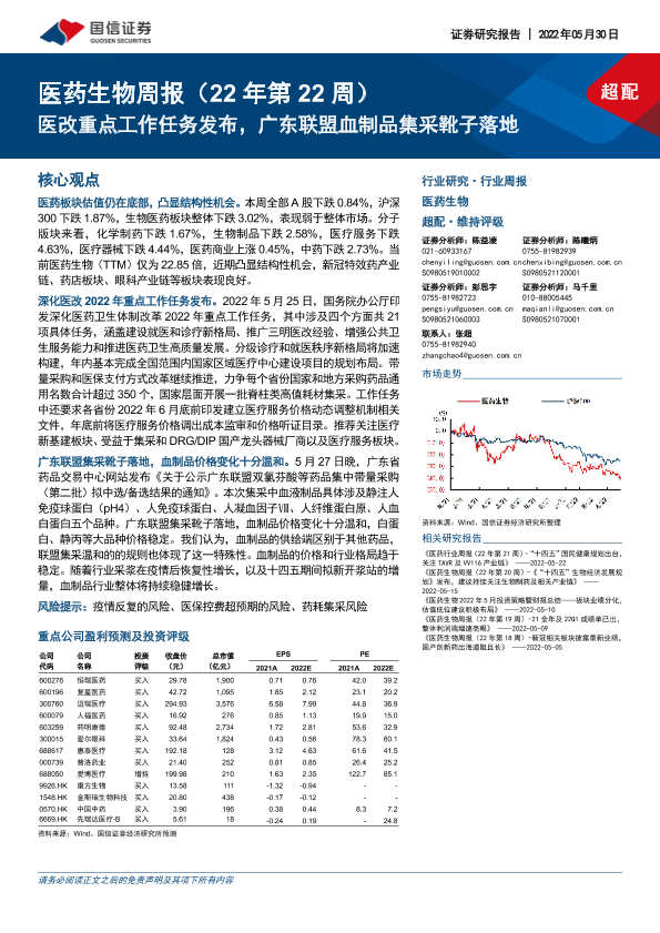【国信证券】【20220530】医药生物周报:医改重点工作任务发布,广东联盟血制品集采靴子落地-14页