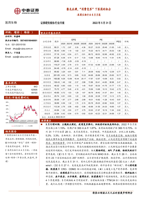 【中泰证券】【20220531】潜龙在渊,“消费复苏”下医药的机会-18页