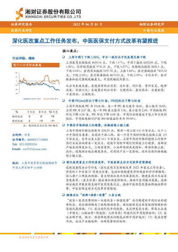 【湘财证券】【20220601】中药行业周报:深化医改重点工作任务发布,中医医保支付方式改革有望推进-12页