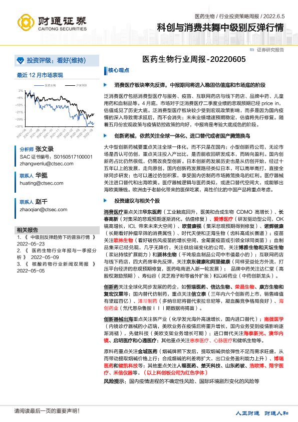 【财通证券】【20220605】医药生物行业周报:科创与消费共舞中级别反弹行情-7页