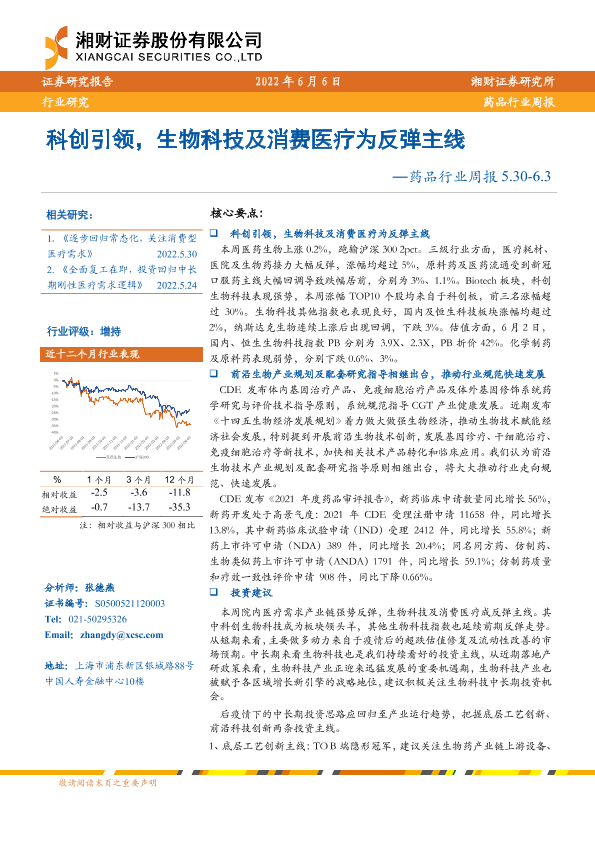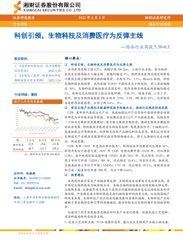 【湘财证券】【20220606】药品行业周报:科创引领,生物科技及消费医疗为反弹主线-16页