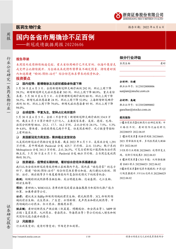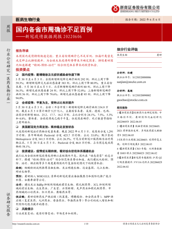 【浙商证券】【20220606】医药生物行业:新冠疫情数据周报-10页