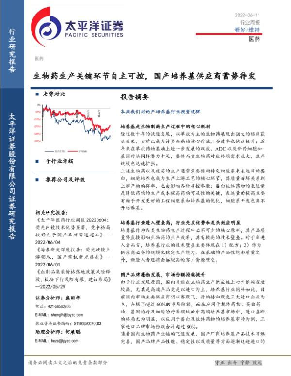 【太平洋证券】【20220611】生物药生产关键环节自主可控,国产培养基供应商蓄势待发-20页