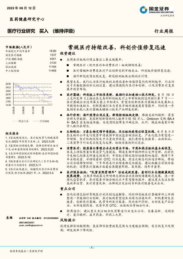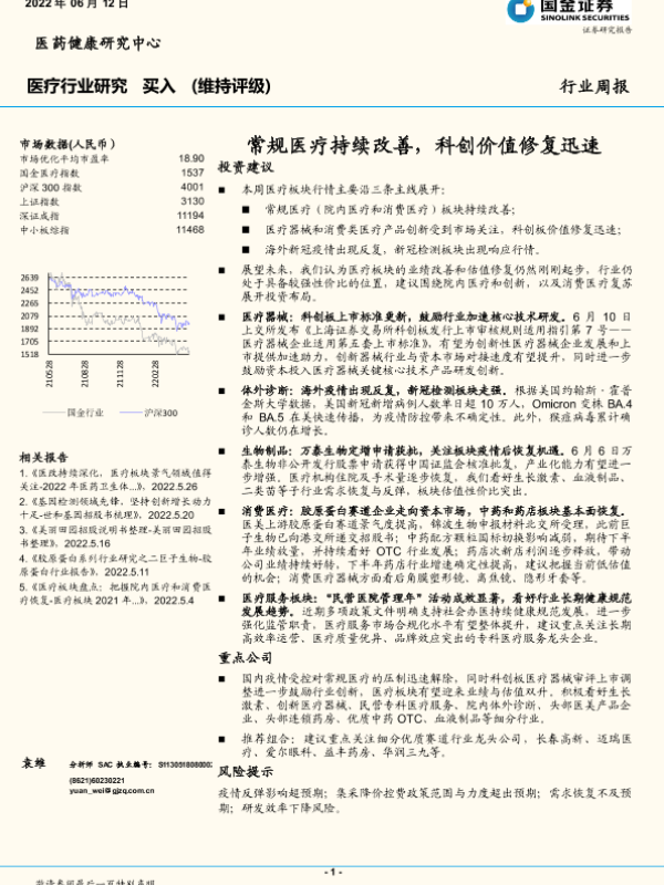 【国金证券】【20220612】常规医疗持续改善,科创价值修复迅速-12页