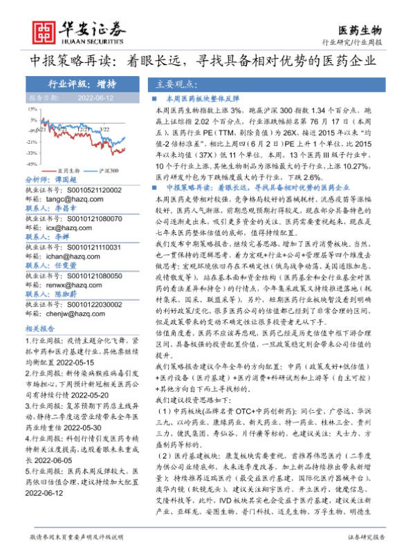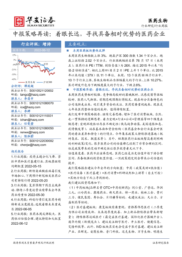 【华安证券】【20220612】医药生物行业中报策略再读:着眼长远,寻找具备相对优势的医药企业-20页